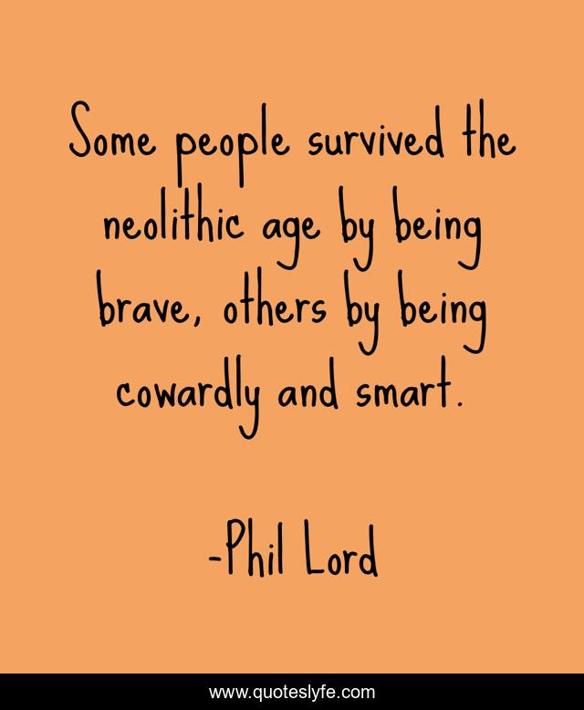 This page presents the quote "Some people survived the neolithic age by being brave, others by being cowardly and smart.". Author of this quote is Phil Lord. This quote is about brave, smart, people,.
