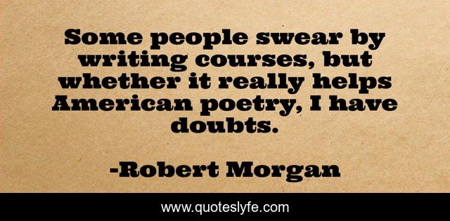 This page presents the quote "Some people swear by writing courses, but whether it really helps American poetry, I have doubts.". Author of this quote is Robert Morgan. This quote is about american, writing, people,.