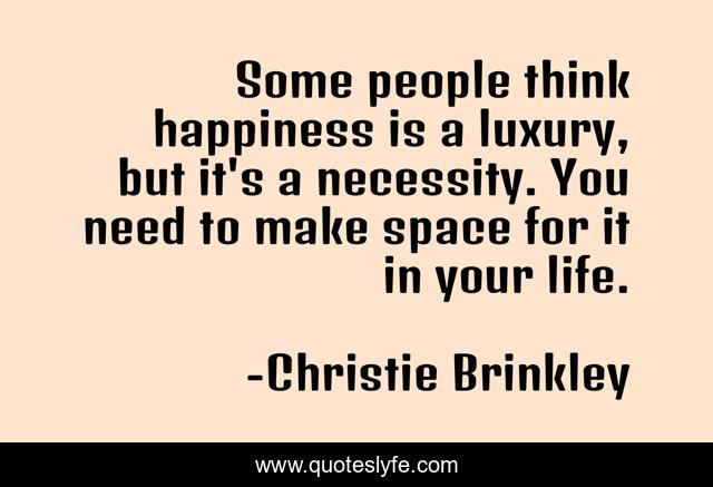 This page presents the quote "Some people think happiness is a luxury, but it's a necessity. You need to make space for it in your life.". Author of this quote is Christie Brinkley. This quote is about life, happiness, people,.