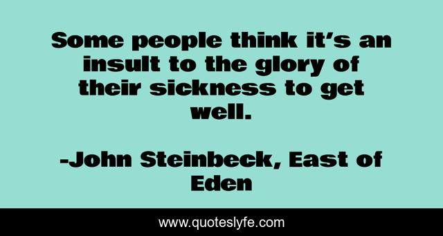 This page presents the quote "Some people think it’s an insult to the glory of their sickness to get well.". Author of this quote is John Steinbeck, East of Eden. This quote is about john-steinbeck, east-of-eden, healing, sickness,.
