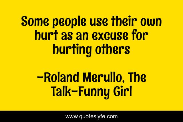 This page presents the quote "Some people use their own hurt as an excuse for hurting others". Author of this quote is Roland Merullo, The Talk-Funny Girl. This quote is about hurting, hurt, hurt-feelings, inspiration,.