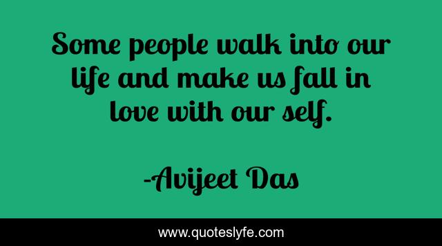 This page presents the quote "Some people walk into our life and make us fall in love with our self.". Author of this quote is Avijeet Das. This quote is about life, love, poetry, walk, passion, fall-in-love, affection,.