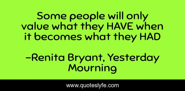 "Renita Bryant, Yesterday Mourning Quotes." Quoteslyfe.com, 2025. Sat. 06 Dec. 2025. <https://www.quoteslyfe.com/quote/Some-people-will-only-value-what-they-204010>.