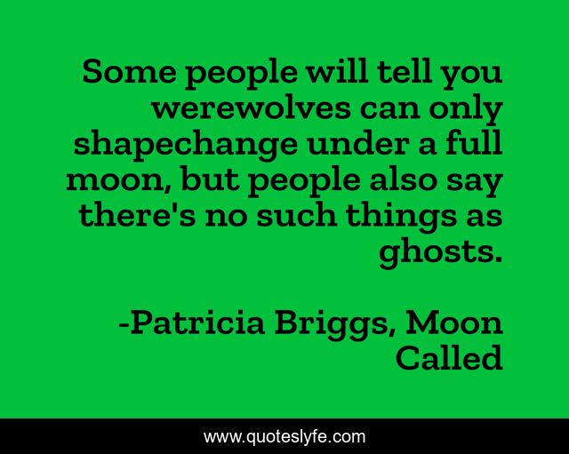 This page presents the quote "Some people will tell you werewolves can only shapechange under a full moon, but people also say there's no such things as ghosts.". Author of this quote is Patricia Briggs, Moon Called. This quote is about werewolves, ghosts, belief,.