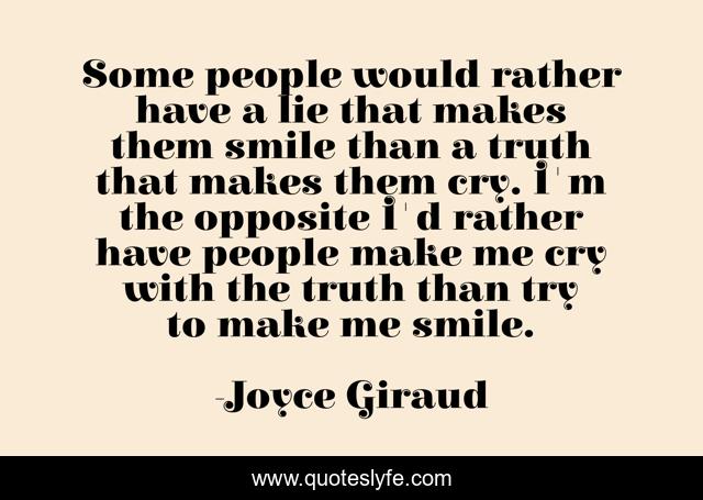 "Joyce Giraud Quotes." Quoteslyfe.com, 2025. Sat. 06 Dec. 2025. <https://www.quoteslyfe.com/quote/Some-people-would-rather-have-a-lie-324385>.