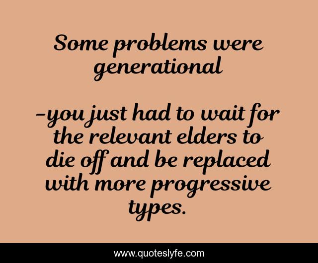 "you just had to wait for the relevant elders to die off and be replaced with more progressive types. Quotes." Quoteslyfe.com, 2025. Sat. 06 Dec. 2025. <https://www.quoteslyfe.com/quote/Some-problems-were-generational-210013>.