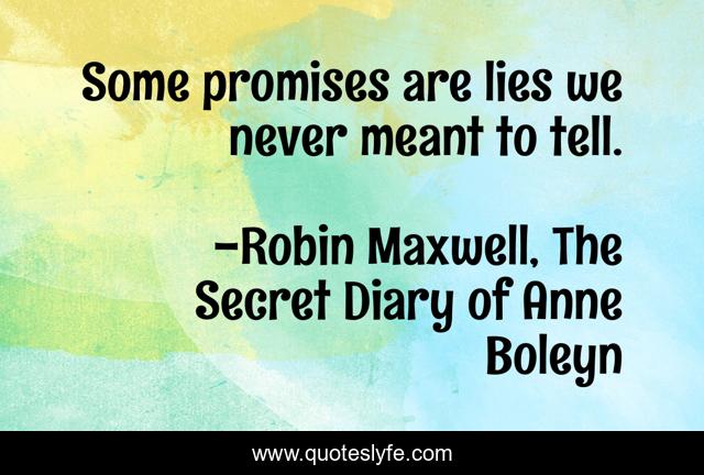 "Robin Maxwell, The Secret Diary of Anne Boleyn Quotes." Quoteslyfe.com, 2025. Mon. 08 Dec. 2025. <https://www.quoteslyfe.com/quote/Some-promises-are-lies-we-never-meant-238753>.