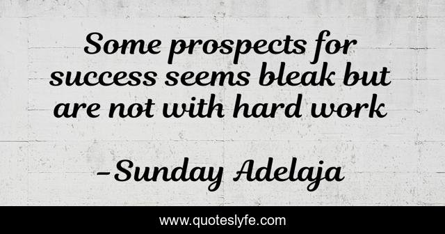 This page presents the quote "Some prospects for success seems bleak but are not with hard work". Author of this quote is Sunday Adelaja. This quote is about prospects, bleak, success,.