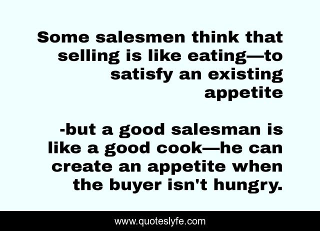 Check all other quotes by but a good salesman is like a good cook—he can create an appetite when the buyer isn't hungry.