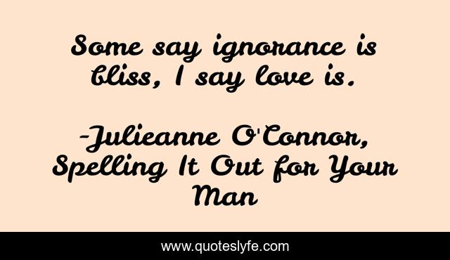 "Julieanne O'Connor, Spelling It Out for Your Man Quotes." Quoteslyfe.com, 2025. Sat. 06 Dec. 2025. <https://www.quoteslyfe.com/quote/Some-say-ignorance-is-bliss-I-say-97782>.