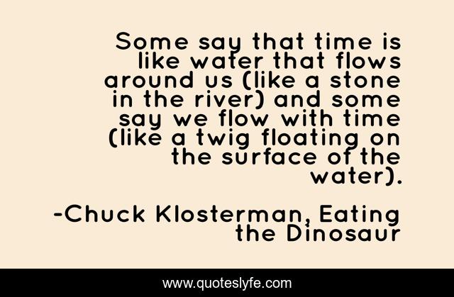 This page presents the quote "Some say that time is like water that flows around us (like a stone in the river) and some say we flow with time (like a twig floating on the surface of the water).". Author of this quote is Chuck Klosterman, Eating the Dinosaur. This quote is about life, nostalgia, time,.
