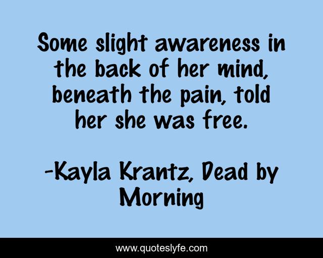 This page presents the quote "Some slight awareness in the back of her mind, beneath the pain, told her she was free.". Author of this quote is Kayla Krantz, Dead by Morning. This quote is about horror, teen-fiction, thriller,.