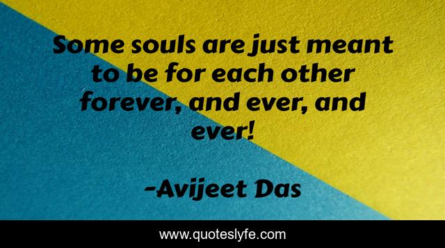 This page presents the quote "Some souls are just meant to be for each other forever, and ever, and ever!". Author of this quote is Avijeet Das. This quote is about life, love, soulmates, soul, souls, meant-to-be, affection,.