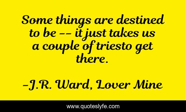 This page presents the quote "Some things are destined to be -- it just takes us a couple of triesto get there.". Author of this quote is J.R. Ward, Lover Mine. This quote is about destiny, fate,.