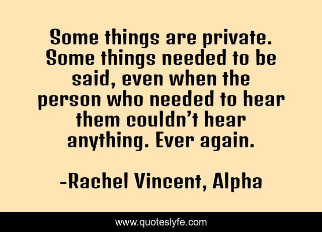 This page presents the quote "Some things are private. Some things needed to be said, even when the person who needed to hear them couldn’t hear anything. Ever again.". Author of this quote is Rachel Vincent, Alpha. This quote is about death, love, lost, affection,.