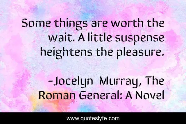 This page presents the quote "Some things are worth the wait. A little suspense heightens the pleasure.". Author of this quote is Jocelyn Murray, The Roman General: A Novel. This quote is about patience, waiting, suspense, pleasure,.