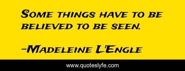 This page presents the quote "Some things have to be believed to be seen.". Author of this quote is Madeleine L'Engle. This quote is about faith, belief,.