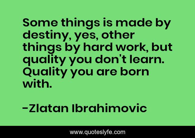 This page presents the quote "Some things is made by destiny, yes, other things by hard work, but quality you don't learn. Quality you are born with.". Author of this quote is Zlatan Ibrahimovic. This quote is about quality, destiny, hard work,.