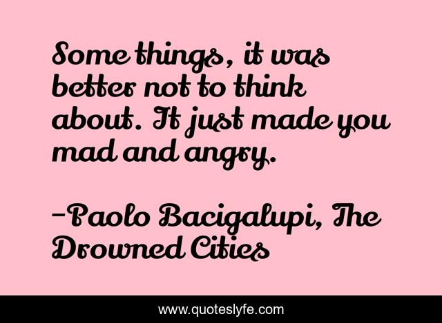 This page presents the quote "Some things, it was better not to think about. It just made you mad and angry.". Author of this quote is Paolo Bacigalupi, The Drowned Cities. This quote is about anger, thoughts,.