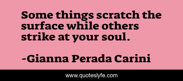 This page presents the quote "Some things scratch the surface while others strike at your soul.". Author of this quote is Gianna Perada Carini. This quote is about rebirth, pain, soulful, moving, healing, deep-thoughts, life-and-living,.