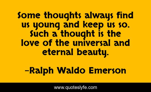 This page presents the quote "Some thoughts always find us young and keep us so. Such a thought is the love of the universal and eternal beauty.". Author of this quote is Ralph Waldo Emerson. .