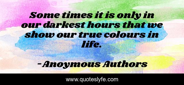 This page presents the quote "Some times it is only in our darkest hours that we show our true colours in life.". Author of this quote is Anoymous Authors. This quote is about true-self, darkness, wisdom,.