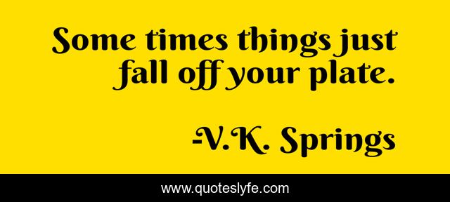 This page presents the quote "Some times things just fall off your plate.". Author of this quote is V.K. Springs. This quote is about life, busy, busyness, life-lessons,.