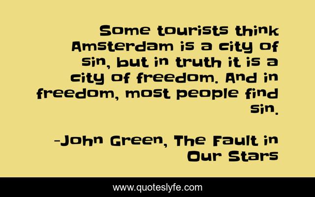 This page presents the quote "Some tourists think Amsterdam is a city of sin, but in truth it is a city of freedom. And in freedom, most people find sin.". Author of this quote is John Green, The Fault in Our Stars. This quote is about amsterdam, sin, freedom,.