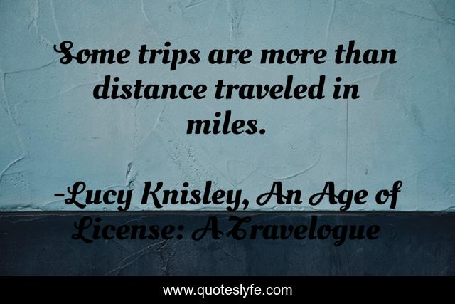 This page presents the quote "Some trips are more than distance traveled in miles.". Author of this quote is Lucy Knisley, An Age of License: A Travelogue. This quote is about distance, travel, trips,.