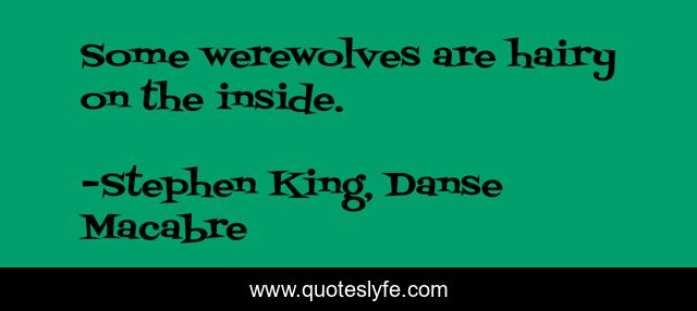 "Stephen King, Danse Macabre Quotes." Quoteslyfe.com, 2025. Sat. 06 Dec. 2025. <https://www.quoteslyfe.com/quote/Some-werewolves-are-hairy-on-the-inside-161335>.