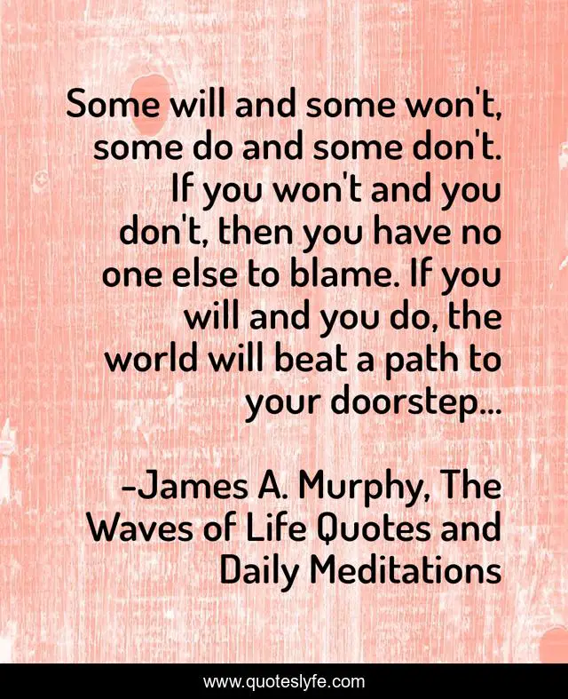 "James A. Murphy, The Waves of Life Quotes and Daily Meditations Quotes." Quoteslyfe.com, 2025. Sat. 06 Dec. 2025. <https://www.quoteslyfe.com/quote/Some-will-and-some-won-t-some-207204>.