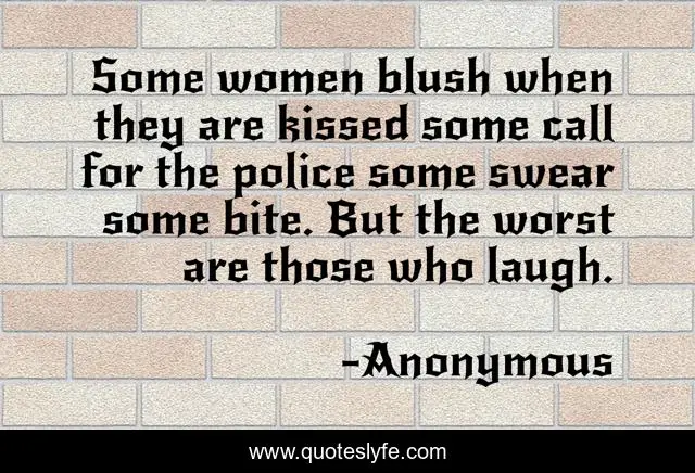 This page presents the quote "Some women blush when they are kissed some call for the police some swear some bite. But the worst are those who laugh.". Author of this quote is Anonymous. .