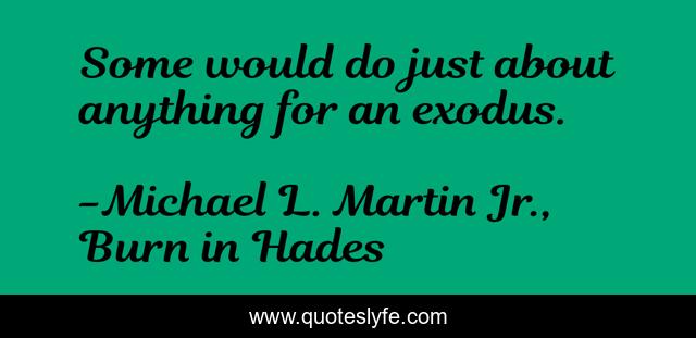 This page presents the quote "Some would do just about anything for an exodus.". Author of this quote is Michael L. Martin Jr., Burn in Hades. .