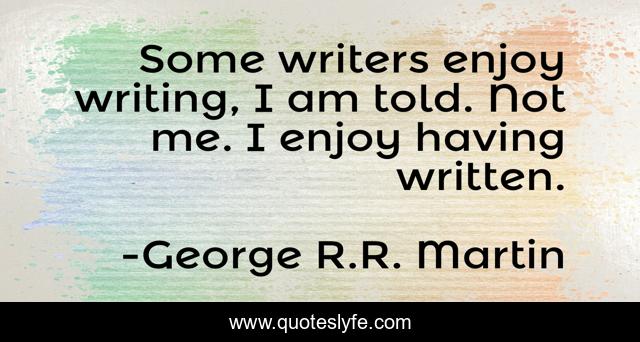 This page presents the quote "Some writers enjoy writing, I am told. Not me. I enjoy having written.". Author of this quote is George R.R. Martin. This quote is about writers, writing,.