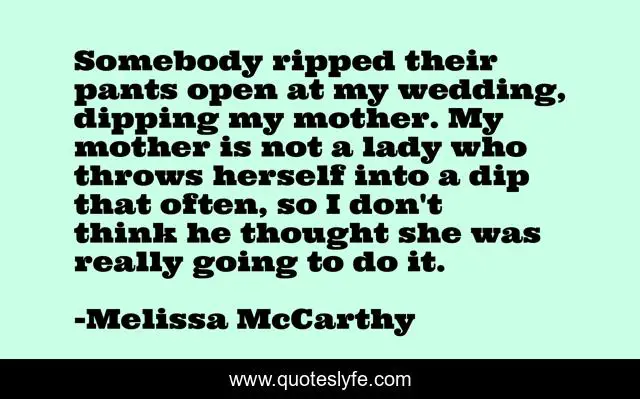 This page presents the quote "Somebody ripped their pants open at my wedding, dipping my mother. My mother is not a lady who throws herself into a dip that often, so I don't think he thought she was really going to do it.". Author of this quote is Melissa McCarthy. This quote is about thought, think, mother,.