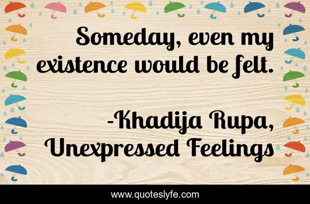 "Khadija Rupa, Unexpressed Feelings Quotes." Quoteslyfe.com, 2025. Sat. 06 Dec. 2025. <https://www.quoteslyfe.com/quote/Someday-even-my-existence-would-be-felt-49573>.