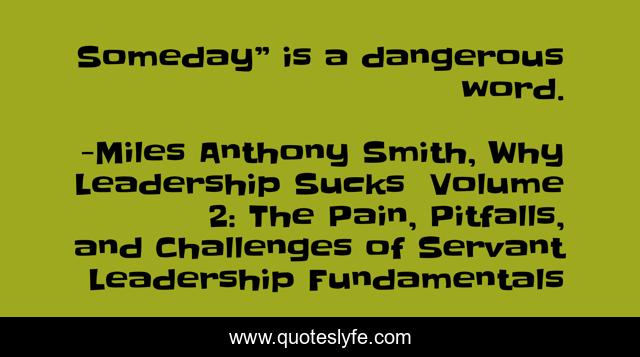 "Miles Anthony Smith, Why Leadership Sucks™ Volume 2: The Pain, Pitfalls, and Challenges of Servant Leadership Fundamentals Quotes." Quoteslyfe.com, 2025. Sat. 06 Dec. 2025. <https://www.quoteslyfe.com/quote/Someday-is-a-dangerous-word-64550>.