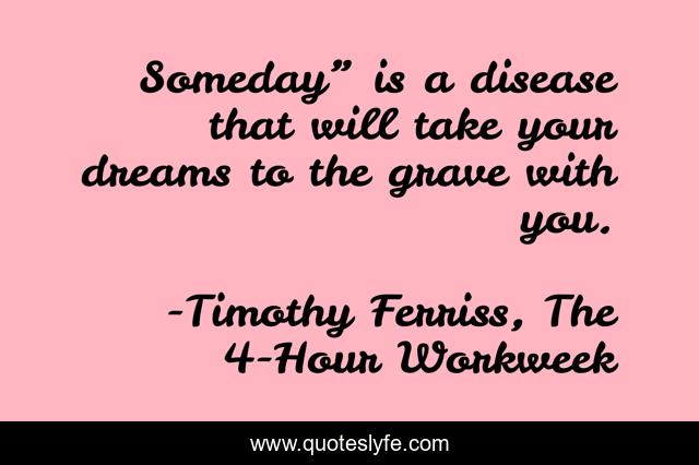 "Timothy Ferriss, The 4-Hour Workweek Quotes." Quoteslyfe.com, 2025. Fri. 05 Dec. 2025. <https://www.quoteslyfe.com/quote/Someday-is-a-disease-that-will-take-53412>.