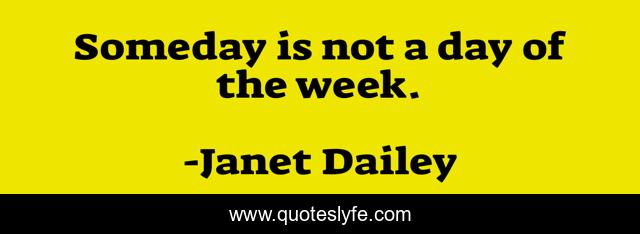 This page presents the quote "Someday is not a day of the week.". Author of this quote is Janet Dailey. This quote is about humor, procrastination,.
