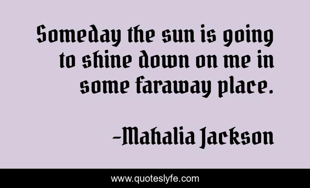 This page presents the quote "Someday the sun is going to shine down on me in some faraway place.". Author of this quote is Mahalia Jackson. .
