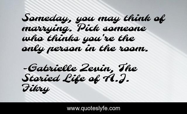 "Gabrielle Zevin, The Storied Life of A.J. Fikry Quotes." Quoteslyfe.com, 2025. Mon. 08 Dec. 2025. <https://www.quoteslyfe.com/quote/Someday-you-may-think-of-marrying-Pick-76622>.