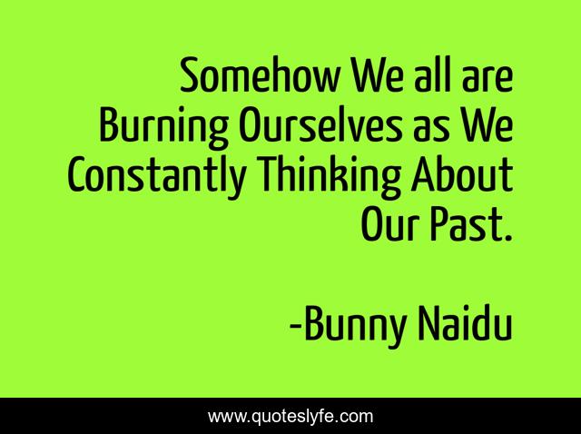 This page presents the quote "Somehow We all are Burning Ourselves as We Constantly Thinking About Our Past.". Author of this quote is Bunny Naidu. This quote is about reality-of-life, positive, motivational, confidence, failure, optimistic, past-and-future,.