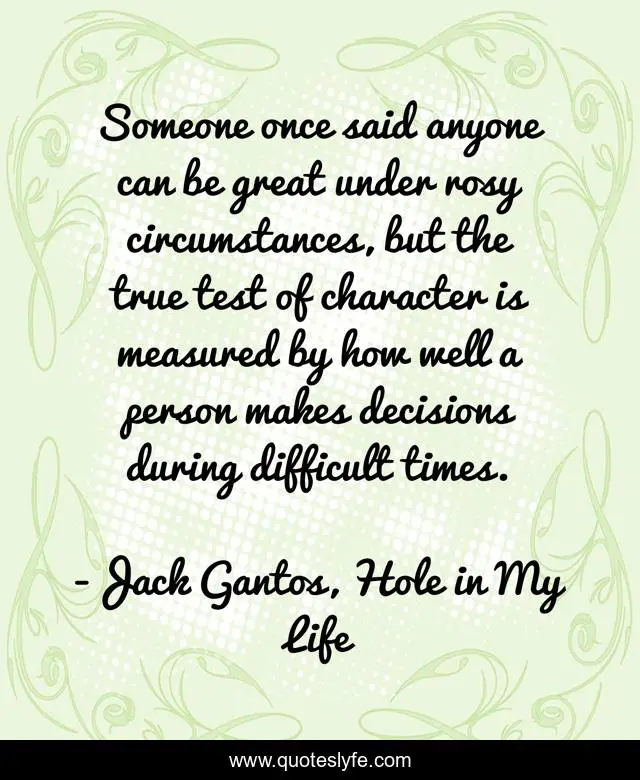 Someone once said anyone can be great under rosy circumstances, but the true test of character is measured by how well a person makes decisions during difficult times.