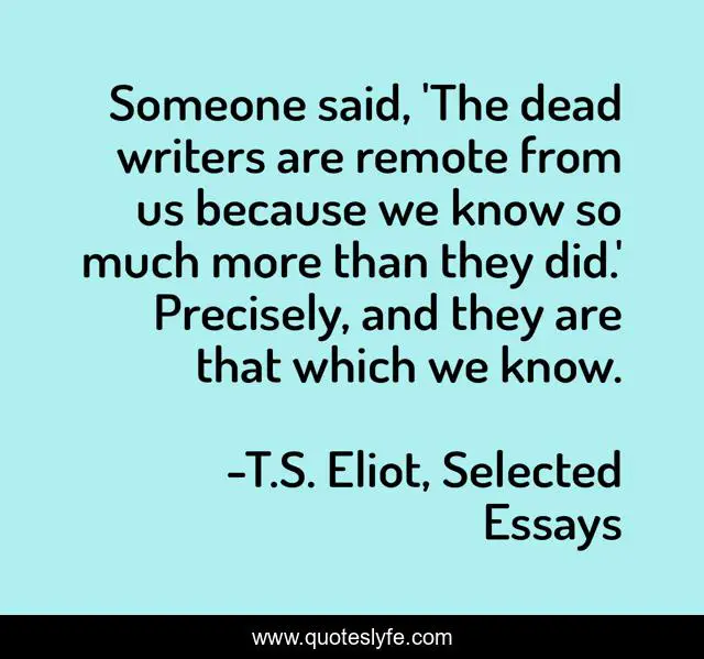 "T.S. Eliot, Selected Essays Quotes." Quoteslyfe.com, 2025. Sat. 06 Dec. 2025. <https://www.quoteslyfe.com/quote/Someone-said-The-dead-writers-are-remote-30508>.