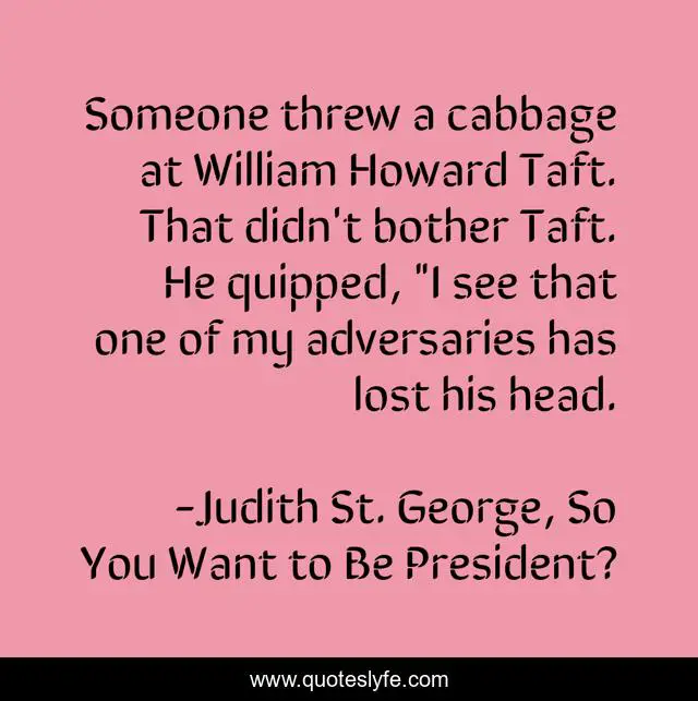 "Judith St. George, So You Want to Be President? Quotes." Quoteslyfe.com, 2025. Fri. 05 Dec. 2025. <https://www.quoteslyfe.com/quote/Someone-threw-a-cabbage-at-William-Howard-149418>.