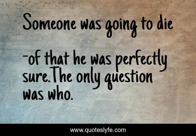 "of that he was perfectly sure.The only question was who. Quotes." Quoteslyfe.com, 2025. Sat. 06 Dec. 2025. <https://www.quoteslyfe.com/quote/Someone-was-going-to-die-146395>.