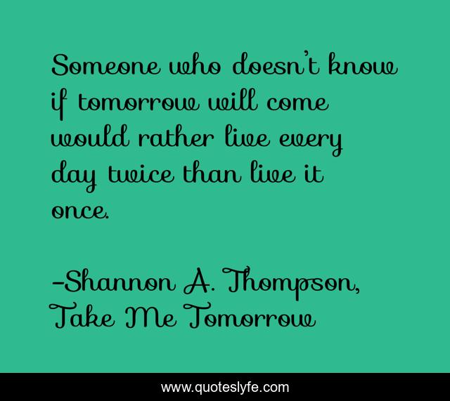 "Shannon A. Thompson, Take Me Tomorrow Quotes." Quoteslyfe.com, 2025. Fri. 05 Dec. 2025. <https://www.quoteslyfe.com/quote/Someone-who-doesn-t-know-if-tomorrow-105716>.