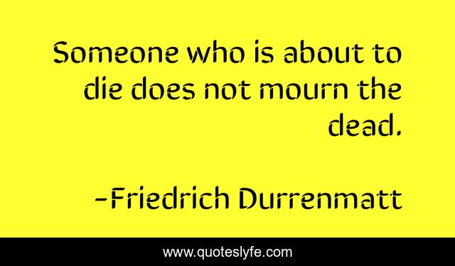 This page presents the quote "Someone who is about to die does not mourn the dead.". Author of this quote is Friedrich Durrenmatt. This quote is about die, someone, dead,.