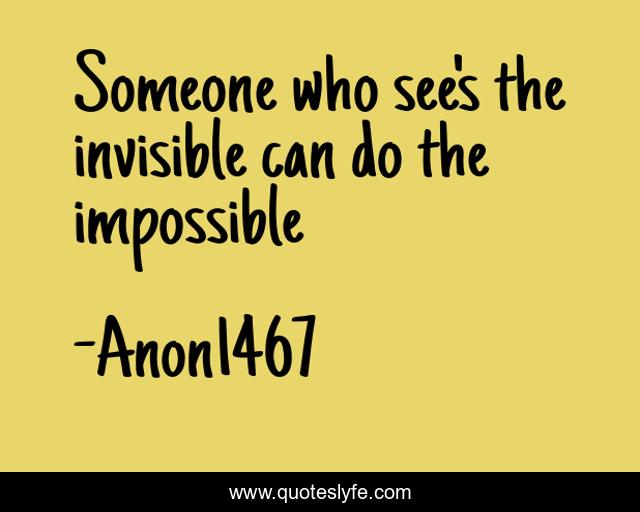 This page presents the quote "Someone who see's the invisible can do the impossible". Author of this quote is Anon1467. .