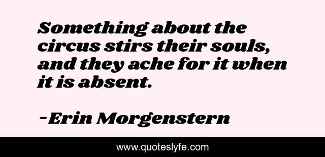This page presents the quote "Something about the circus stirs their souls, and they ache for it when it is absent.". Author of this quote is Erin Morgenstern. This quote is about travel, circus, dreams,.